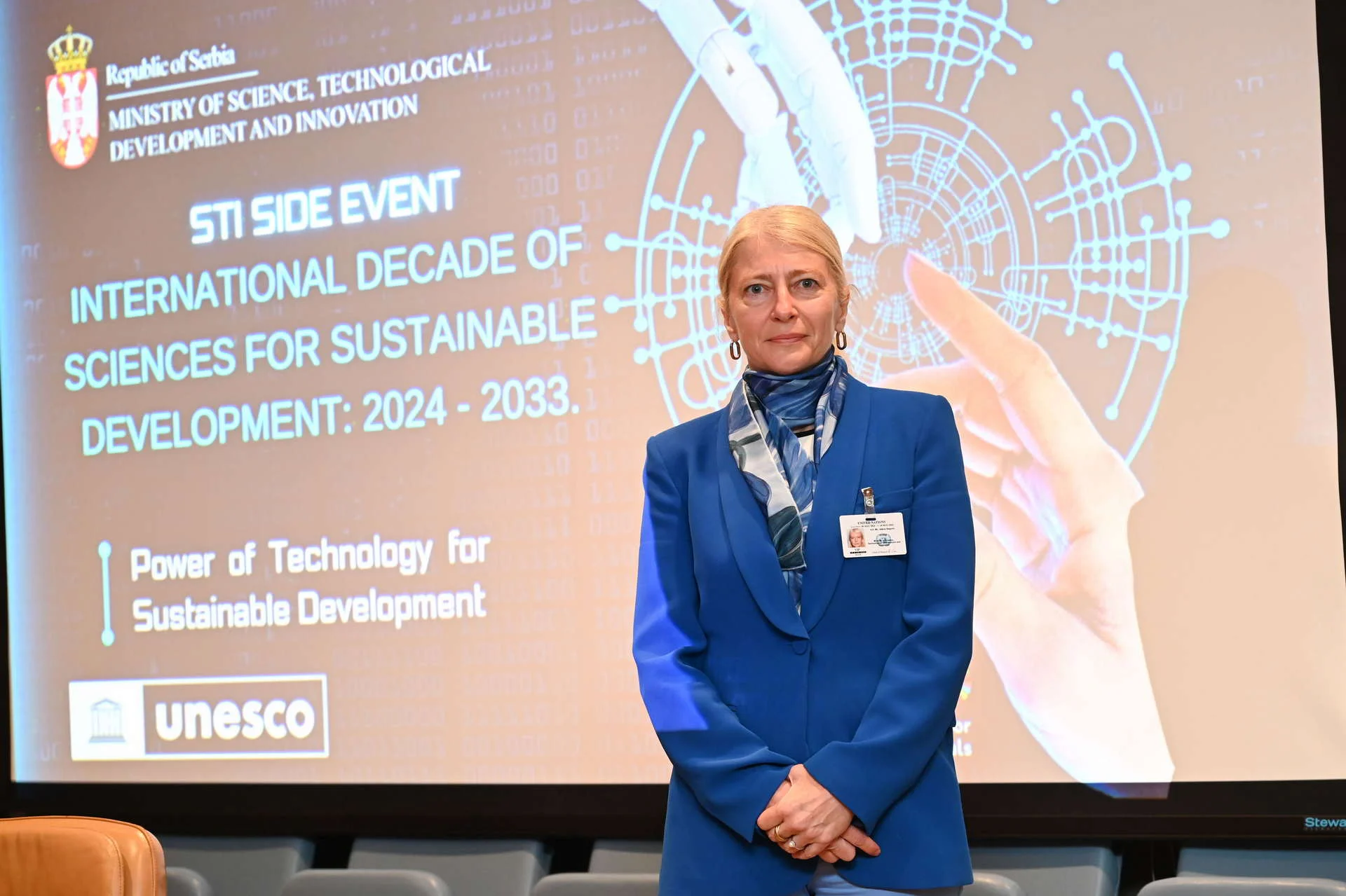 Министарство науке, технолошког развоја и иновација и Унеско, као стратешки партнер, током маја 2024. године организовали су пратећи догађај у оквиру великог СТИ форума у седишту Уједињених нација у Њујорку. Назив догађаја у организацији Министарства науке био је: „Међународна Декада наука за одрживи развој: Моћ технологије за одрживи развој. Говорници овог догађаја били су, поред министарке др Беговић и помоћнице министра Вукашиновић и директор Унеско канцеларије у Њујорку и представник Унеско у УН у Њујорку Елиот Минченберг, вођа групе Молекуларне патологије у Међународном центру за генетичко инжењерство и биотехнологију др Емануеле Бурати, стручњак за подршку ГПАИ центра у Монтреалу и извршна директорка ЦЕИМИА Софи Фалаха, као и проф. Владимир Булатовић са Масачусетског института за технологију и проф. др Владимир Црнојевић, директор Института БиоСенс. Овај догађај био је званични почетак Међународне декаде наука за одрживи развој.